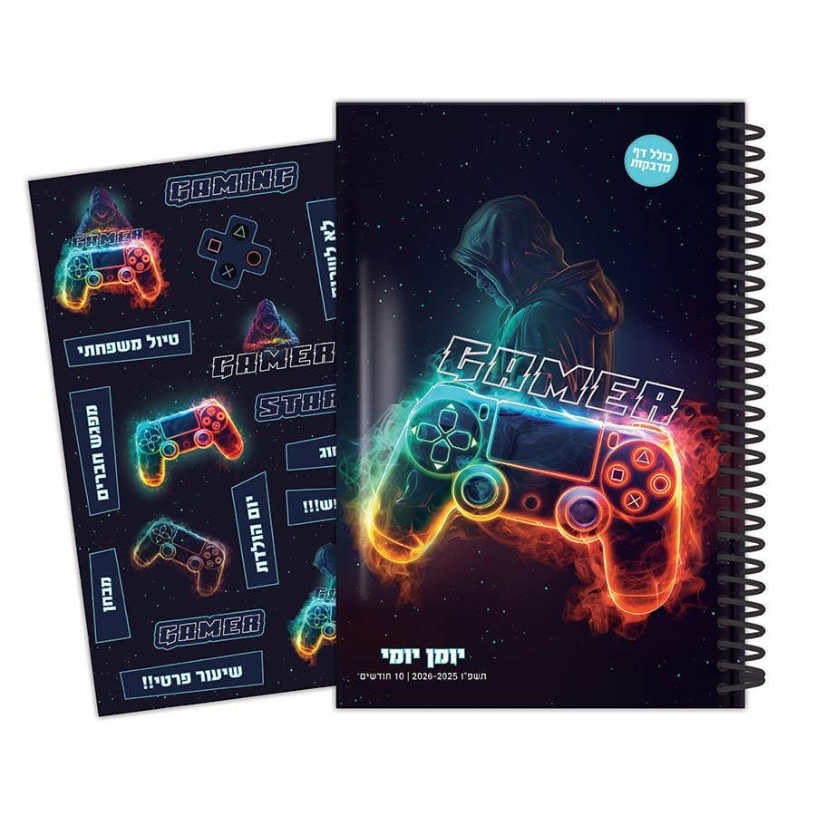 יומן תלמיד 14 21ודף מדבקות יומי גיימינג
