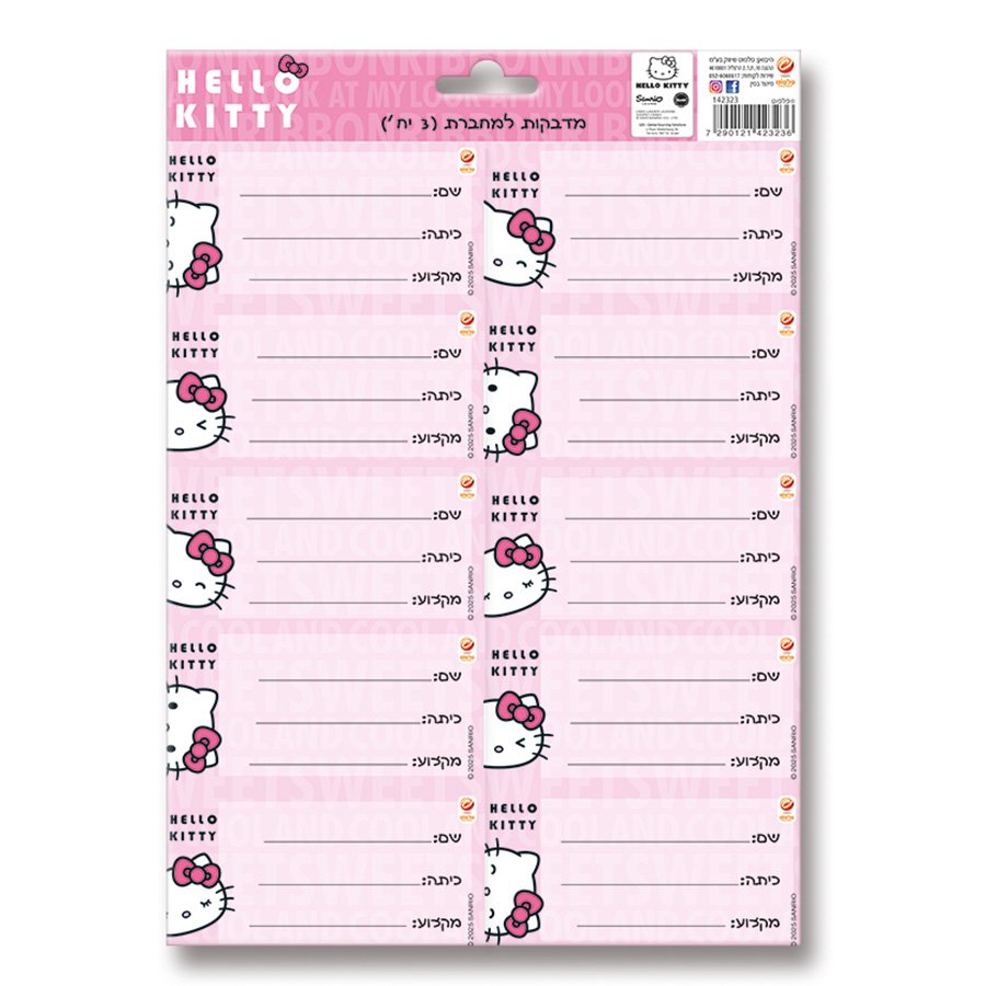 מדבקות שם תלמיד הלו קיטי