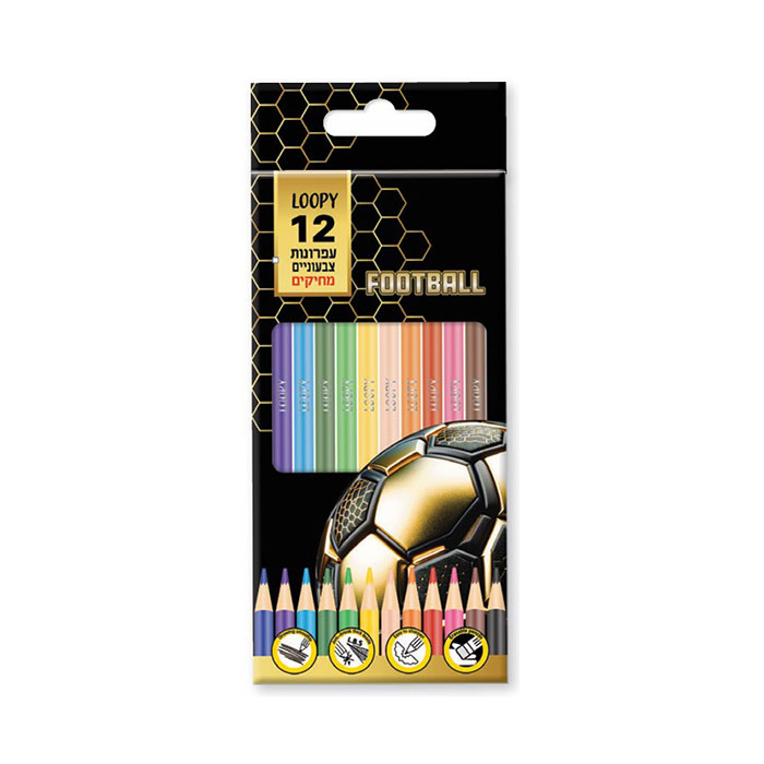 עפרונות צבעוניים 12 יח' כדורגל זהב